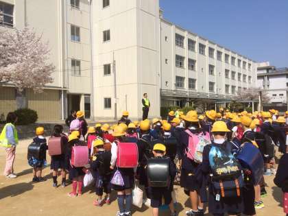 下校訓練の際、長原東地域活動協議会からいただいたベストを着用しました。