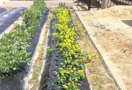 長原ガーデンの春の風景です。菜の花がきれいに咲いています。