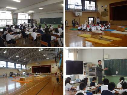 6年生は「とび箱」を使い、台上前転などにチャレンジしていました。