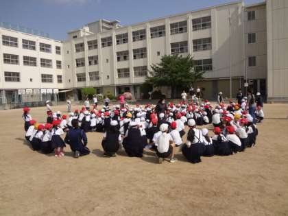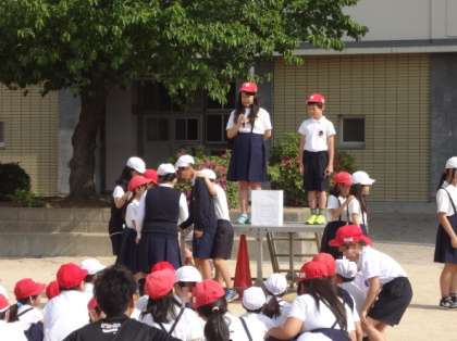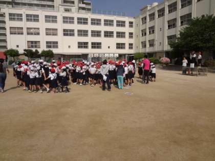 ルールのわからない1年生に対して、6年生がにこにこしながら優しく対応してくれていました。最後まで勝ち残った先頭の子どもにみんなで拍手を送りました。