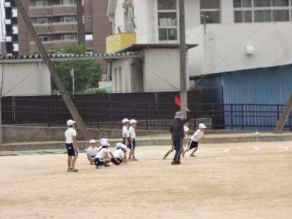 ソフトボールは2年生にとってはとても重いボールですが、精一杯遠くに飛ばしていました。スタートも1年生の時に比べて、とても上手になっています。