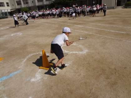 今日のスマイル集会は、バドミントンの羽運びリレーでした。