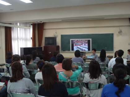 6年担任から電子黒板を使っての“旅程や宿泊所の説明”がありました。
