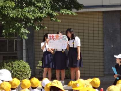今朝の児童朝会で、図書委員から「読書月間」の連絡がありました。