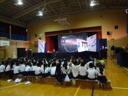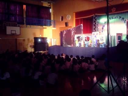 「いえでででんしゃ」(あさのあつこ原作)は、1年生から6年生まで楽しむことのできる劇でした。劇がおわると子どもたちの間から、自然に拍手が沸き起こっていました。