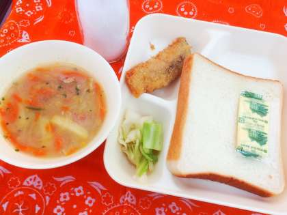 ※今日のスープの、たまねぎとにんじんは細切り、パセリはみじん切りです。