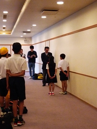 6月8日(木) 無事に宿につきました。 入所式で、児童代表のあいさつをしています。