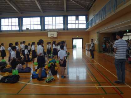 渋滞で到着が少し遅れましたが全員無事に戻り、多くの保護者の方々のお迎えの中、帰校式を行いました。