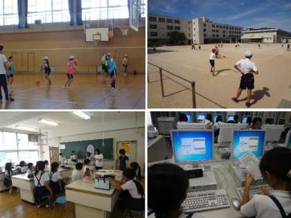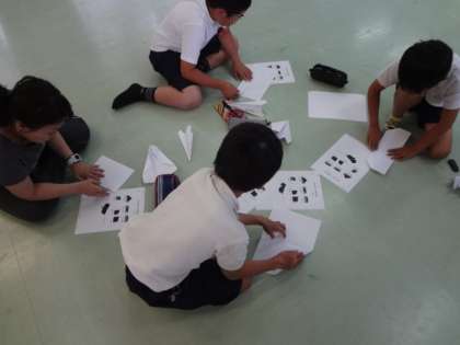 本日のクラブ活動。屋内運動クラブはバスケットボール、屋外運動クラブはベースボール型ゲーム、科学・工作クラブは紙飛行機、パソコンクラブは名刺作りでした。手芸・調理クラブは、学期末の調理の話し合いの後、小物入れの制作をしていました。