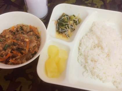 チンゲンサイともやしの甘酢あえ りんご(缶)