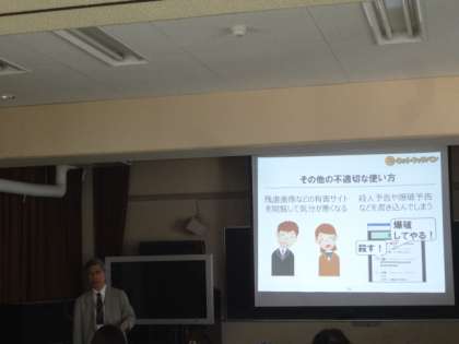 子どもに迫るネット危機の実態や特徴について、ビデオなどを交えて講演していただきました。