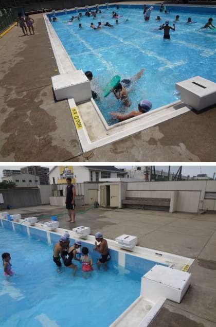 幼稚園のプールに比べるとはるかに大きく、園児たちはとても驚いていました。
