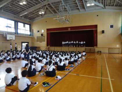 朝の集会の時間を利用して、計画委員会の紹介を行いました。