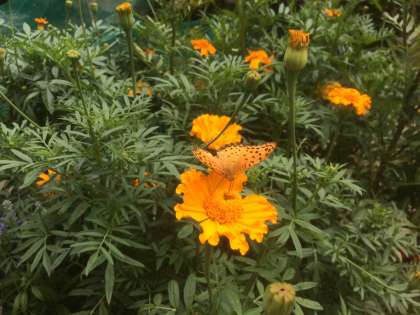 昨日ご紹介したマリーゴールドのみつを吸いにやってきました。