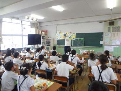 給食の時間に持っていくと、5年生たちはとても優しい顔でこの絵を見ていました。