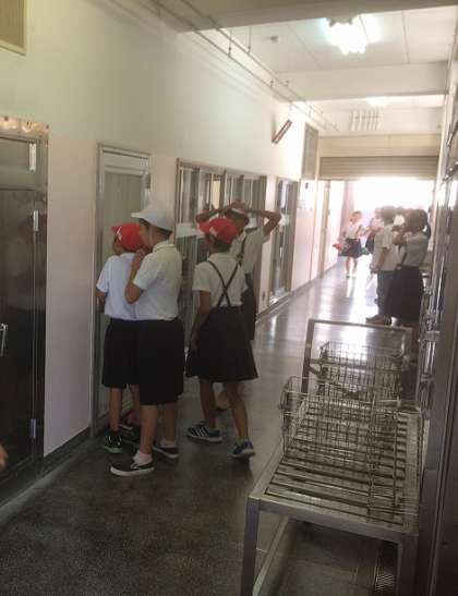 給食器を返却に来た児童たちが、給食調理員さんに大きな声でお礼を言っていました。