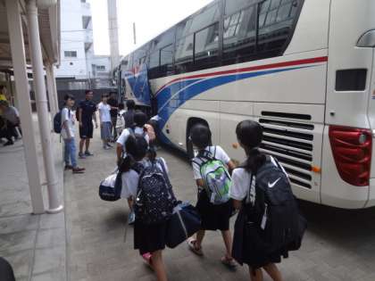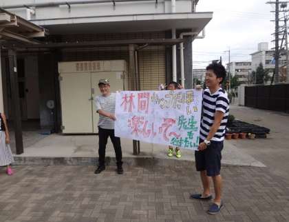 先生方の心のこもった「行ってらっしゃい」横断幕に、子どもたちも保護者の方々も笑顔。みな元気に出発していきました。