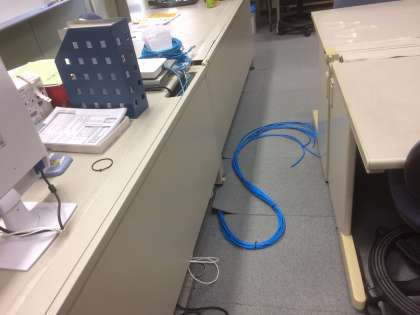 今日は、パソコンをつなぐ線やハブと呼ばれる部品の交換工事がありました。
