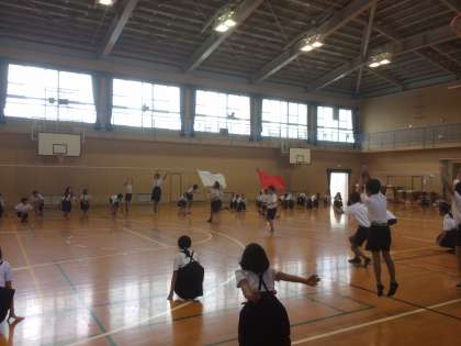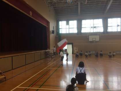 現在は講堂の中で練習しています。