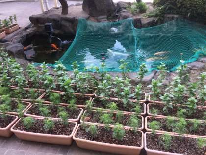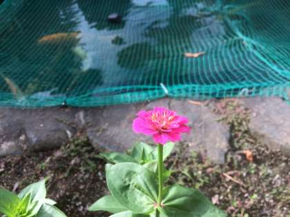 先日池の周りに置きかえられた苗の中で、今朝見てみると一輪花が咲いていました。