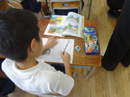 「道徳」の研究授業を行いました。たくさんの先生が参観する研究授業は全く初めてという1年生ですが、子どもたちは一生けんめいに考え、プリントに自分の意見を書き込んでいました。