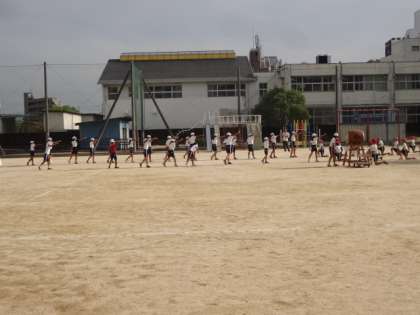 広さ・声の響きなど、講堂の中とは勝手が違うため、戸惑っている子どももいるかもしれませんが、みんな元気にがんばっていました。