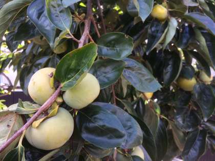 ガーデンの隅っこにある柿の木に青い実がなっていました。