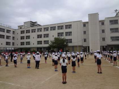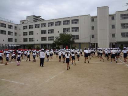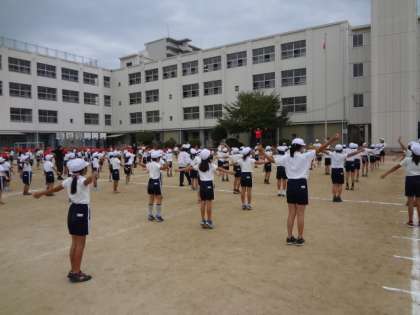 赤・白組別で並び、体操隊形と整列隊形への移動の練習も行っています。