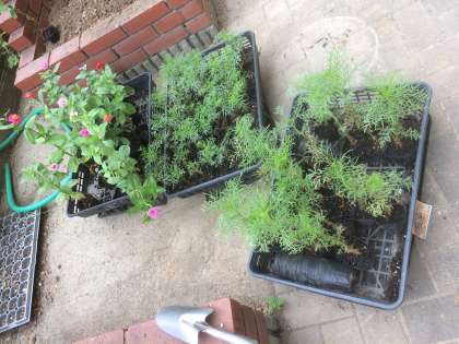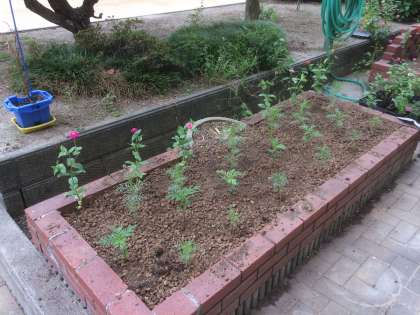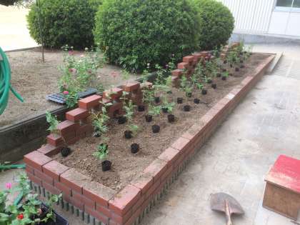 1年生の学習園に、コスモス・百日草・マリーゴールドが植え替えられました