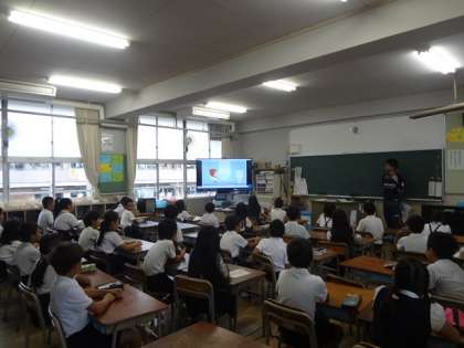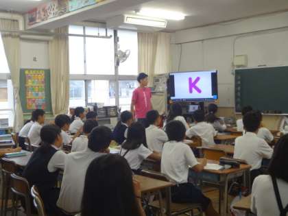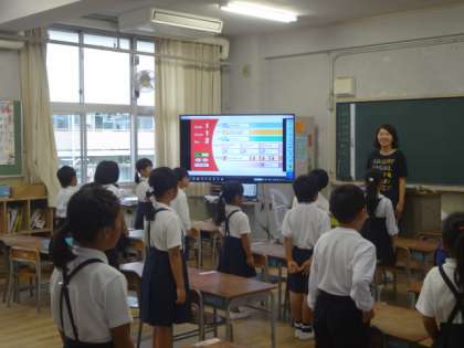 運動会明けで子どもたちの中には少し疲れた様子の子どもたちも見られますが、クラス全員で朝から元気に外国語活動に取り組んでいます。