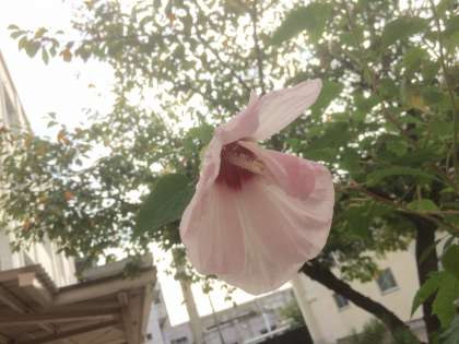 夏から咲き続けている一日花の芙蓉(フヨウ)も一輪咲いていました。