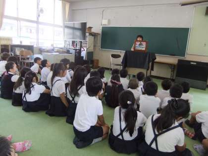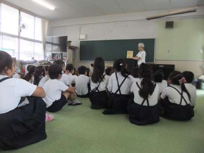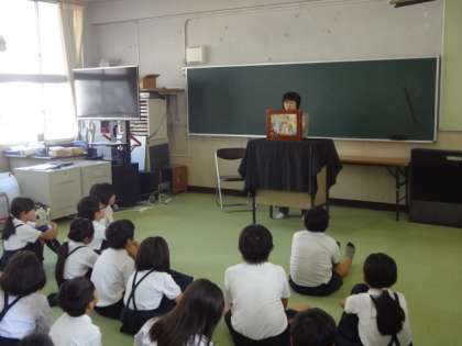 平野図書館からボランティアの方が来てくださり、3・4年生に絵本と紙芝居を読んでくださいました。みな静かに聞き入っていました。