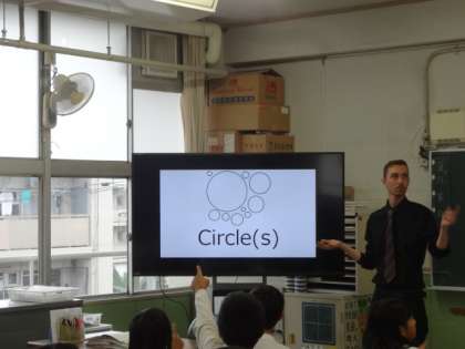 ダン先生の英語活動では、いろいろな形について学習しました。(星・ハート・四角形・丸など)