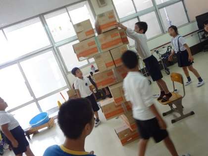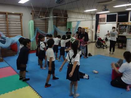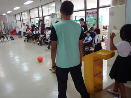 今回は “ボーリング”“ジェンガ”“ペープサートを見てダンスをしよう”の3チームに分かれて、支援学校の児童たちと楽しく活動していました。