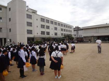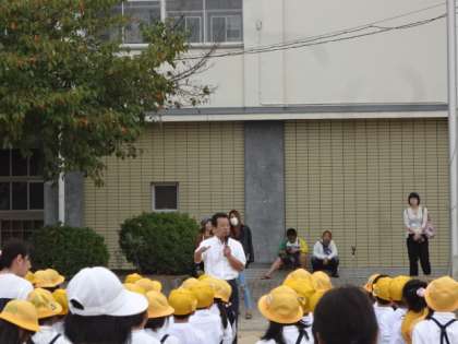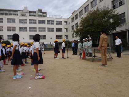 訓練を終え、お世話になったPTAや地域の方々、消防署の方々、平野区役所の方々に児童を代表して6年生からお礼の言葉をお伝えしました。
