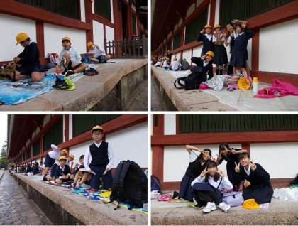 東大寺では軒下を借りて、お弁当を楽しくいただきました。
