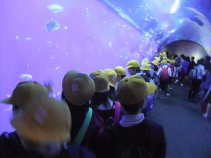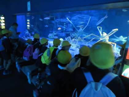 子どもたちはいろんな種類の水中生物を興味津々に見ていました。