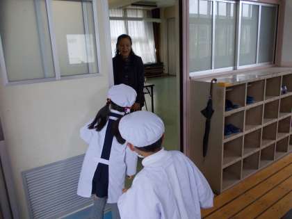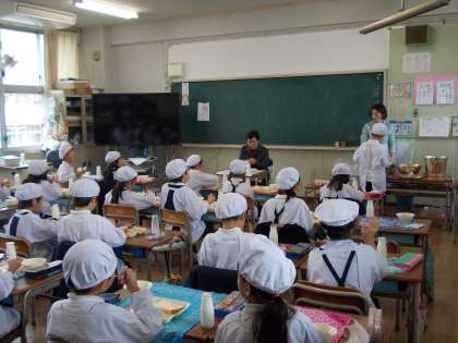 日ごろお世話になっている見守り隊の方々にお越しいただき、子どもたちといっしょに給食を召し上がっていただきました。