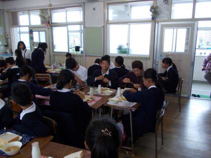 子どもたちは登下校の際に間お世話になっている方々と、楽しく給食を食べることができました。
