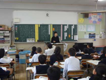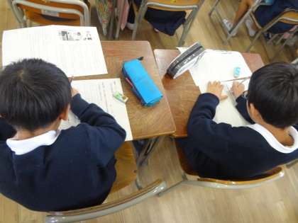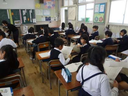 子どもたちはワークシート自分の意見を記入し、席の隣同士で意見を交流し、その後全体で意見交流を進めていました。