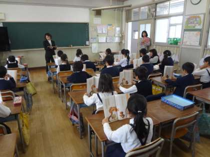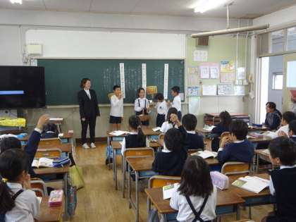 様々な動作をすることで、子どもたちが場面を思い浮かべることができるように、授業を工夫しました。