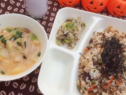 ※給食では味つけして乾燥させてものを使います。今日の、「キャベツの赤じそあえ」に使っています。