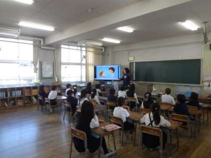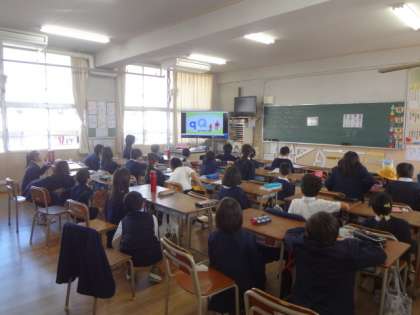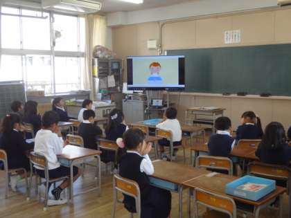 何度も英語のお話を聞いているうちに、1年生もビデオのまねをしながら、自然と口をついて英語が出るようになってきました。