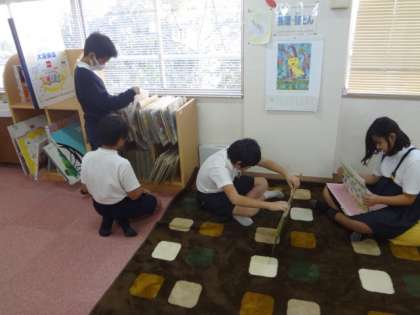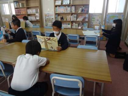 図書委員が、読書月間の朝の会に紙芝居や絵本を読む“お話のプレゼント”をするために、委員会の時間を利用して練習をしました。