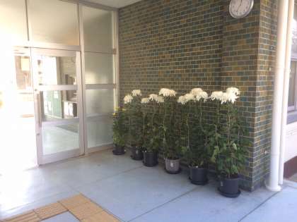 正門入口に管理作業員さんが丹精込めて育てた“キク”が登場しました。