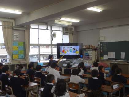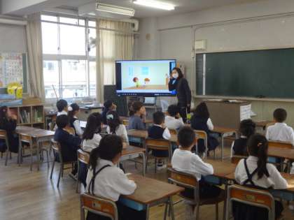 低学年は、新しいお話が始まりました。先生からは“しっかり聞いてね”のポーズです。