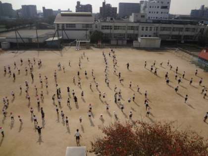 4年生が社会見学に行っているため、今日のなわとびタイムは4年生の場所が空いています。