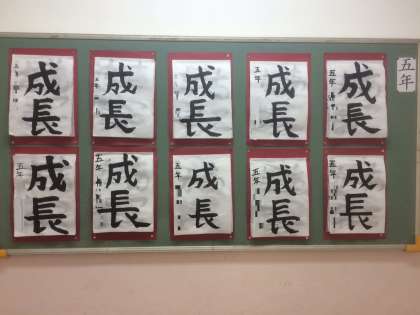 11月9日(木) 5年生の階段掲示は、習字“成長”です。