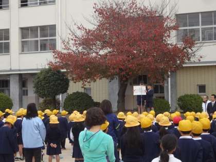 児童朝会や放送を通じて、計画委員が全校児童に呼びかけました。