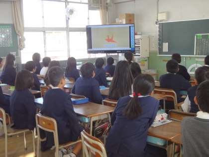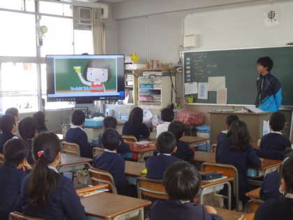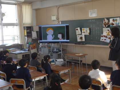“show you(ショウ ユー)”ということばを聞き取り、“しょうゆ(醤油)”と似た発音であるのを楽しんでいるクラスもありました。